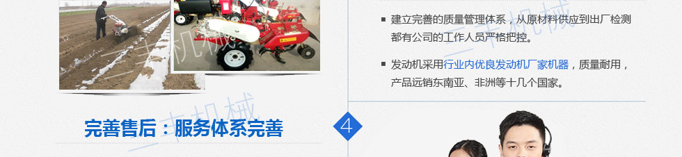 公司堅持綠色環保、智能制造的目標定位,大力弘揚工匠精神,微耕機 以具有豐富實踐經驗的高級工程師為主體的技術管理隊伍。
